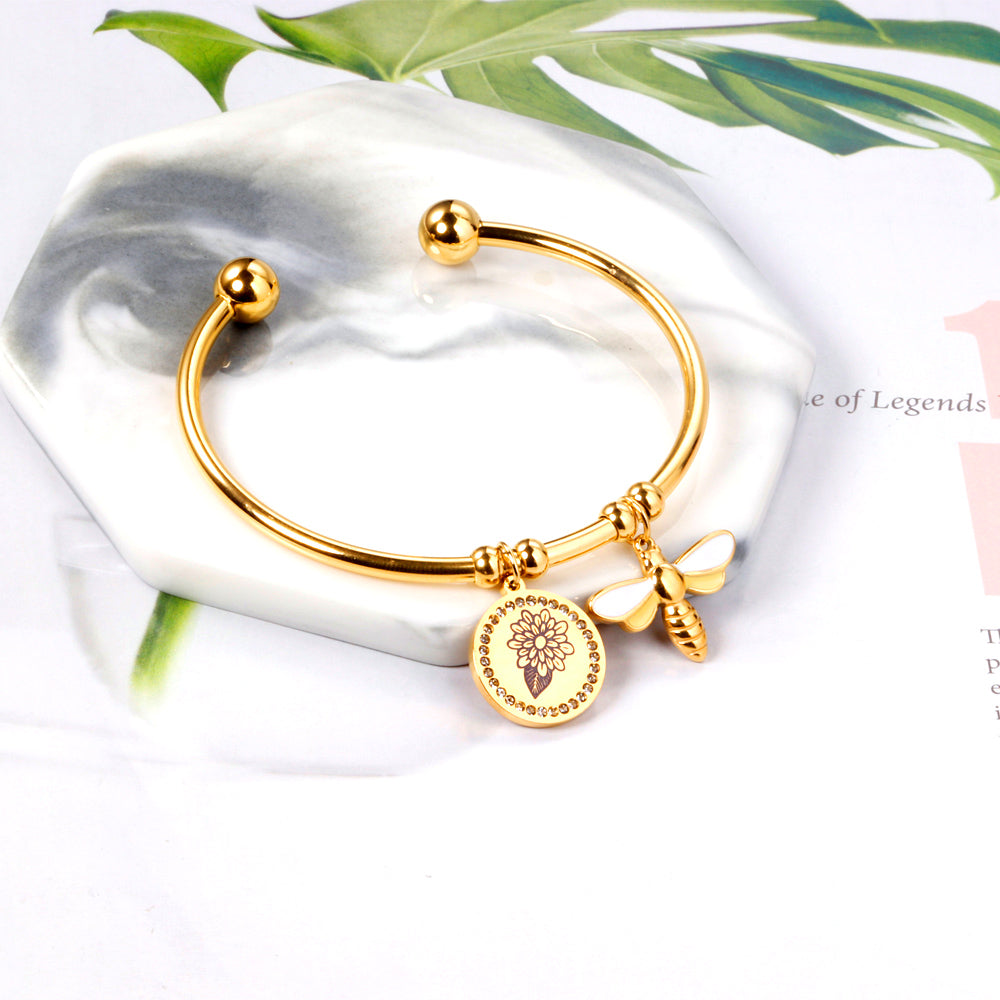 This hard bracelet is adorned with beautiful hand-held flower and butterfly charms, creating a unique and elegant look. Made from high-quality materials, it is both durable and fashionable. Perfect for adding a touch of nature-inspired beauty to any outfit